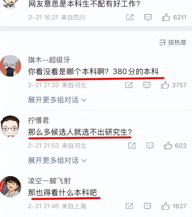 我不信,那么多好学校的研究生里面,找不出比那个3个水本更好的。其实看评论区,显而易见,大多数网友们也不信。